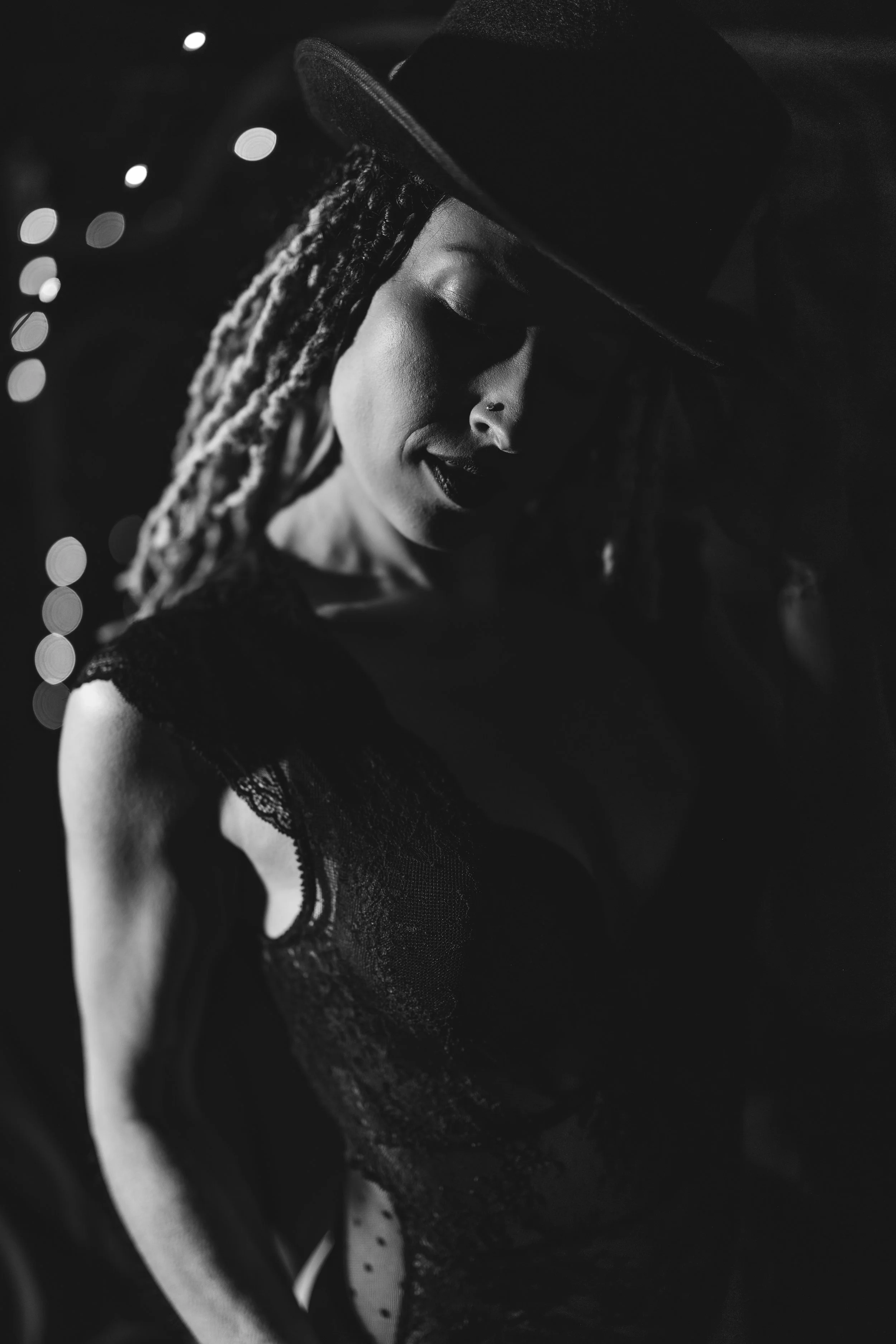 Her mind works in black & white. She looks away from the camera because it seems safer.